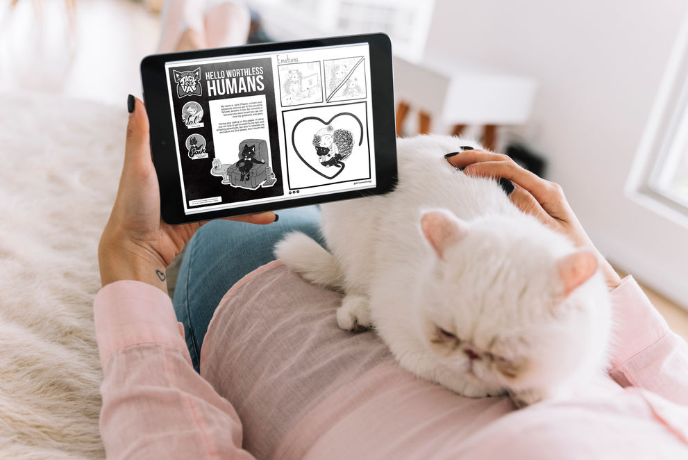 Through comic cartoons, various adventures of an illustrator and her black cat (take it easy, he doesn't give bad luck) are narrated to survive in this crazy world with creativity, perseverance and a little anger. This webcomic has 2 publications per month on social networks and a digital fanzine available on Amazon with exclusive content and in 2 languages